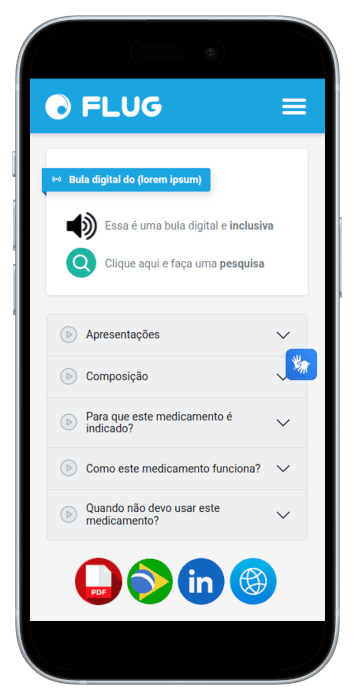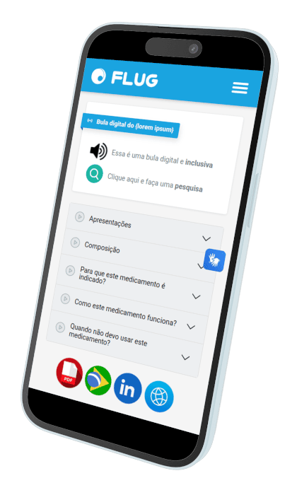 Criamos bulas digitais personalizadas com a identidade visual da sua farmacêutica. Veja o exemplo ao lado.